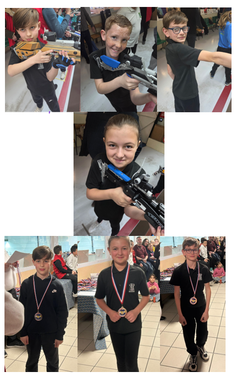 Quatre de nos tireurs étaient engagés pour cette belle compétition : Maëlys, Liam et Yanis à la carabine, ainsi qu’Erwan au pistolet. Nos trois carabiniers, inscrits en catégorie poussin, ont su faire preuve d’une belle cohésion et d’un excellent esprit d’équipe. Leur engagement et leur sérieux ont été récompensés par une magnifique médaille d’or par équipe, venant couronner leurs efforts.
